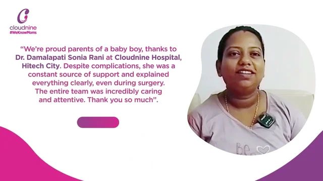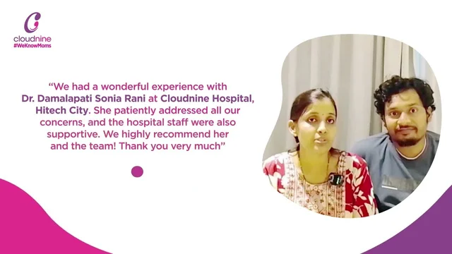Dr. Damalapati Sonia Rani is the best Gynecologists & Fetal Medicine Specialist in Hitech City, Hyderabad. Book Appointment Online, View doctor fees, read user reviews and real patient feedbacks, Contact Number - 099728 99728. Dr. Damalapati Sonia Rani is a Consultant at Cloudnine Hospitals - Consult the best Gynecology & Fetal Medicine Specialist specialist nearby you. Dr. Damalapati Sonia Rani holds M.B.B.S, DGO, DNB (OBS & GYN).